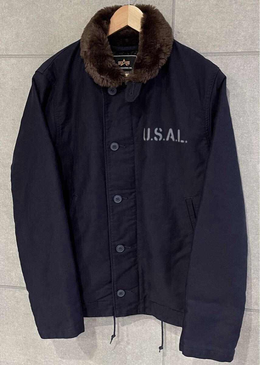 - 秋冬に! ALPHA INDUSTRIES アルファ インダストリーズ N-1 デッキジャケット コットン ネイビー Lサイズ メンズ アメカジ 美品 ○ 新規×