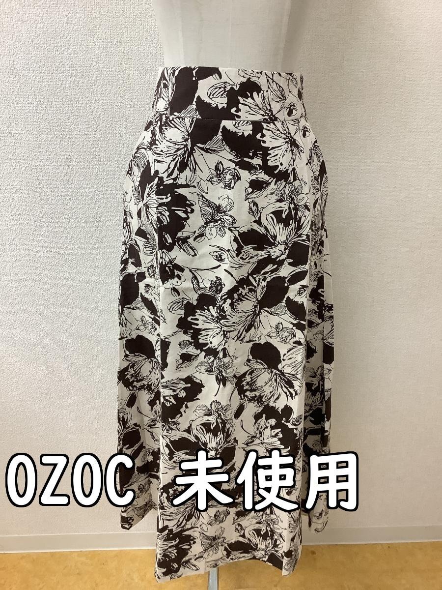 - オゾック (OZOC) タグ付き未使用 ベージュに茶色ボタニカル柄 麻ブレンド ウエストゴム サイズM