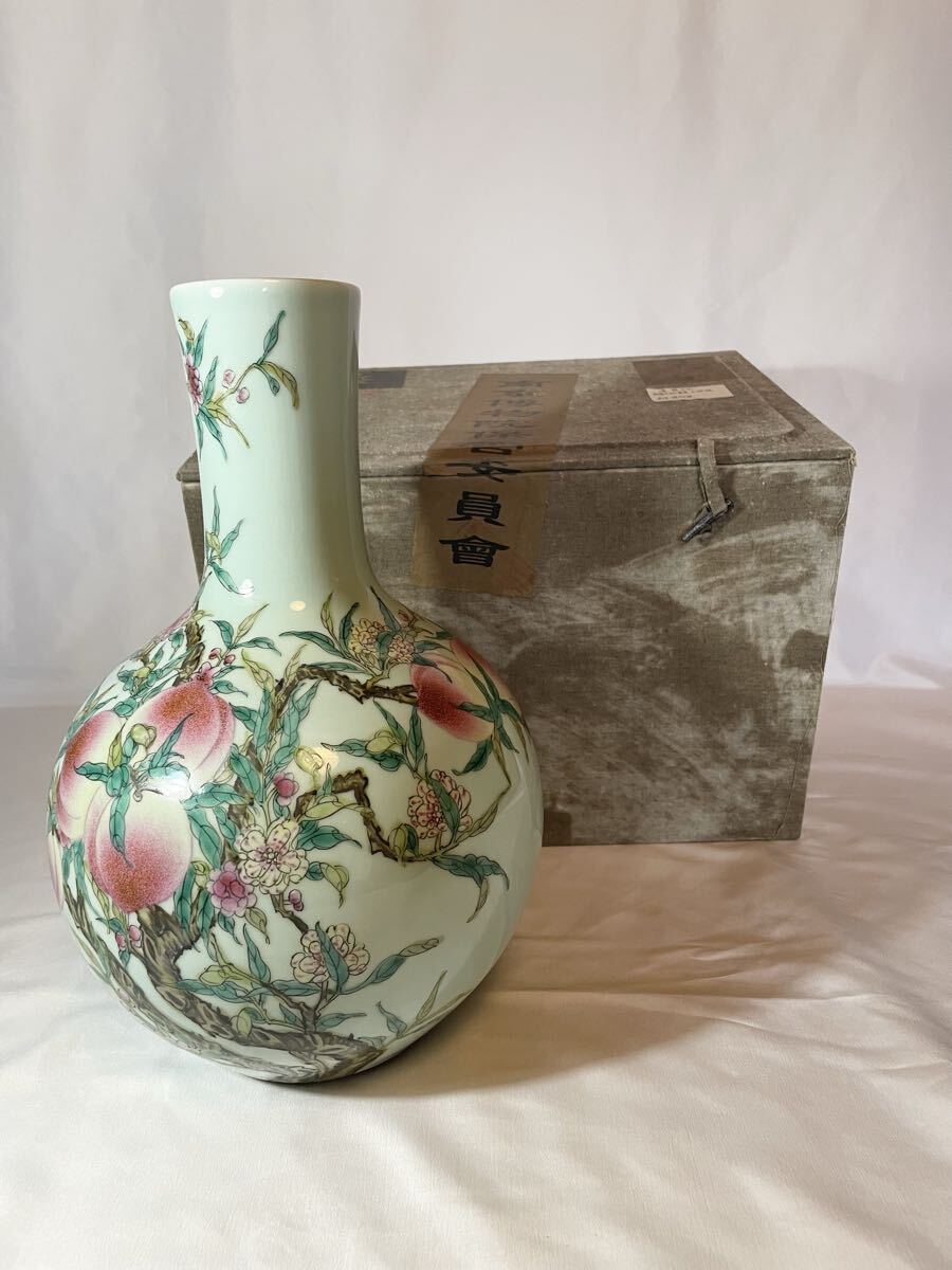 - 【故宮】 粉彩九桃富貴天球瓶 花瓶 南京博物院保管委員会 大清雍正年製 約H33-W22cm フラワーベース 花瓶 中国美術 陶器 置物 陶芸 花生