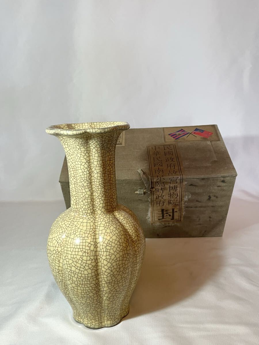 > 【故宮】宋代哥窯鉄線氷裂紋花口瓶 約H25cm 民国政府故宮博物院 中華民国南京臨時政府封 故宮博物院西安 押運部隊七十二軍 花瓶 中国美術