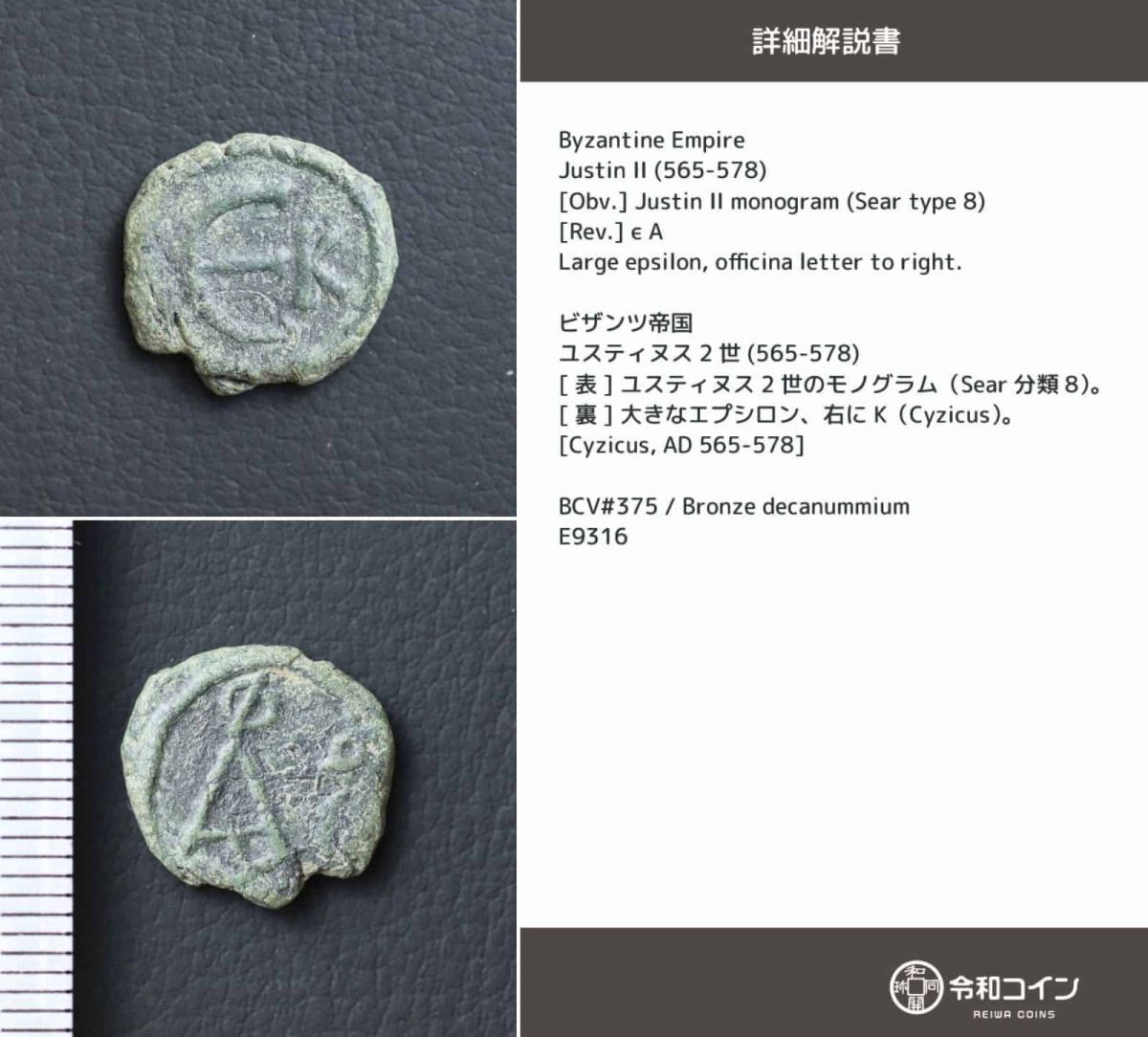 > *[令]ユスティヌス2世 ビザンツ帝国コイン【詳細説明カード付】古代ギリシャ,古代ギリシア,古代ローマ[E9316]7r6