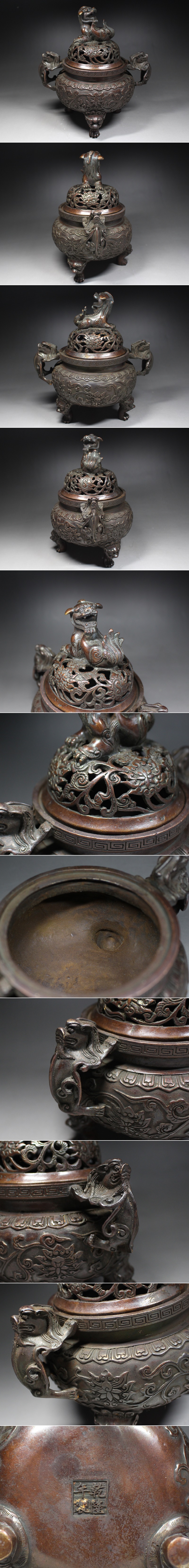 - ◆古銅・乾隆年製・獣双耳・三足香炉・獣足・在印在銘・唐物・香道具◆a9119h