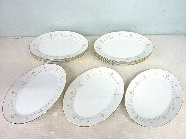 - T401 ノリタケ Noritake COURTNEY 6520 金彩 プレート まとめ 10枚セット 約36cm×26cm 楕円 ディナープレート 皿 大皿 食器 洋食器