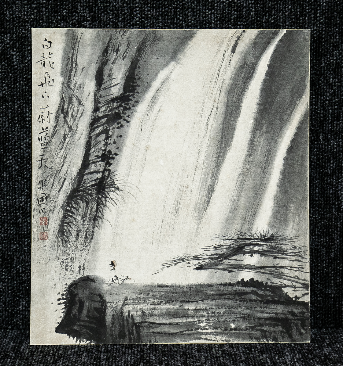 - 色紙ー1934 安田半圃 瀑布図 新潟の画家 【真作】