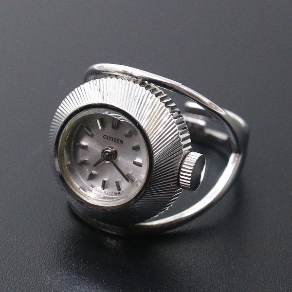 > 033c ジャンク扱簡易動作確認済 CITIZEN シチズン 4-930622 シルバー ラウンド 手巻き リングウォッチ