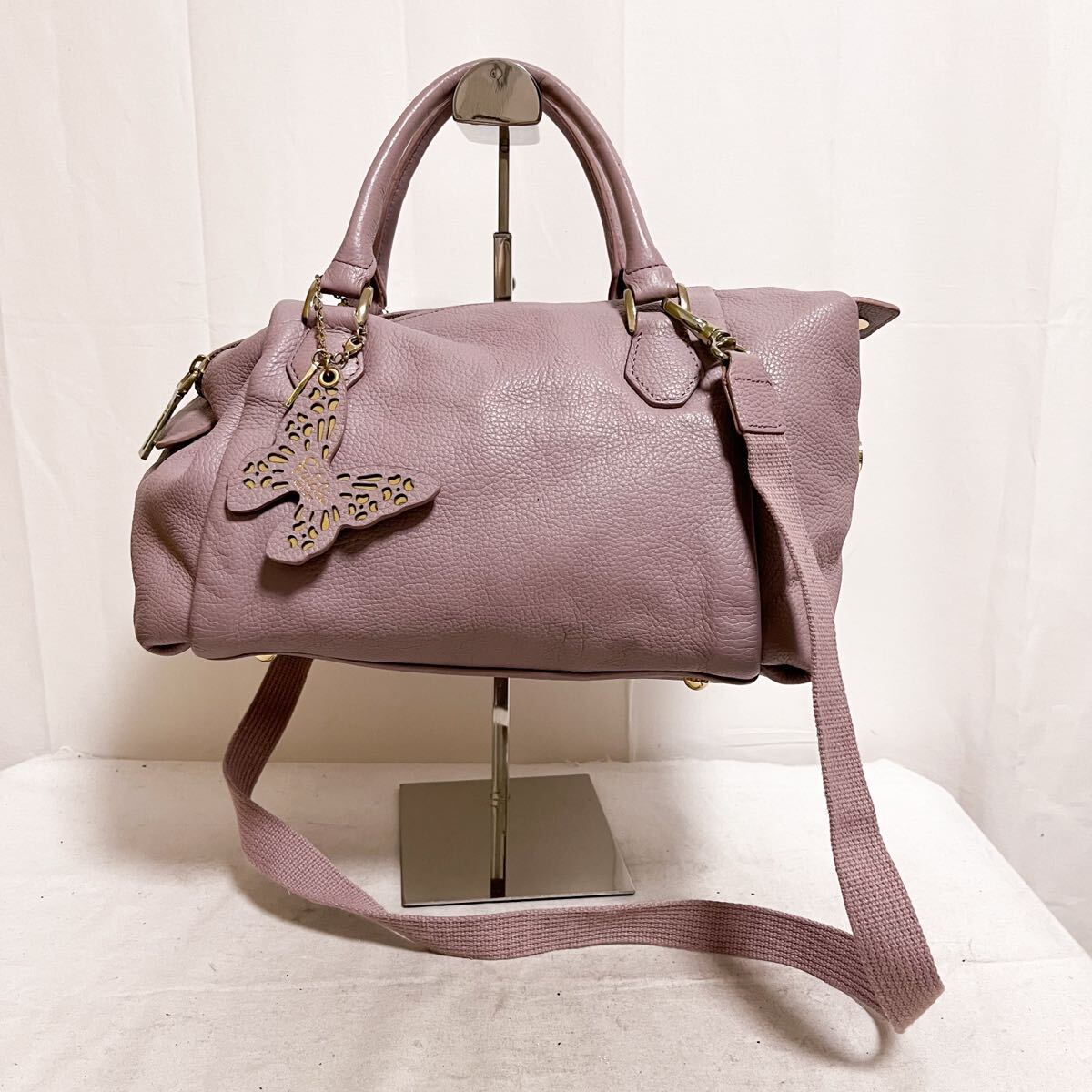 > 和843★ Falchi NEWYORK ファルチ ニューヨーク レザーバッグ ハンドバッグ ショルダーバッグ パープル レディース
