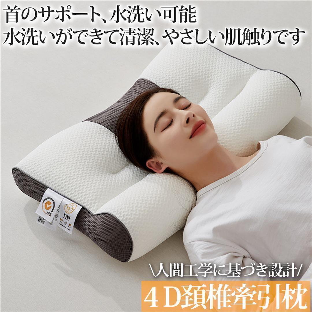 - 新品未使用品 4D頚椎牽引ケア枕 肩こりいびき 低反発 安眠 矯正 熟睡 灰色