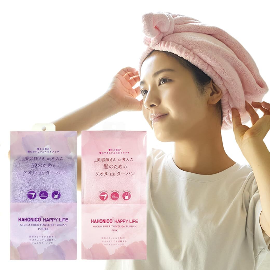 - 厚手 ヘアターバン 髪を素早く乾かす ヘアキャップ タオルキャップ 速乾 吸水 (ピンク) ターバン de 【ターバンタイプ】美容