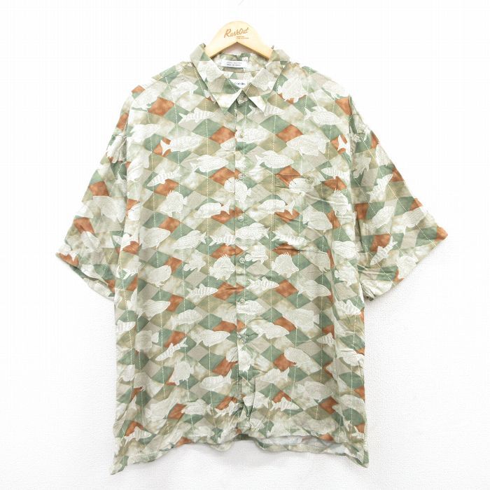 - XL/古着 ピエールカルダン 半袖 シャツ メンズ 90s 魚 大きいサイズ レーヨン 緑他 グリーン spe 25apr19 中古 トップス