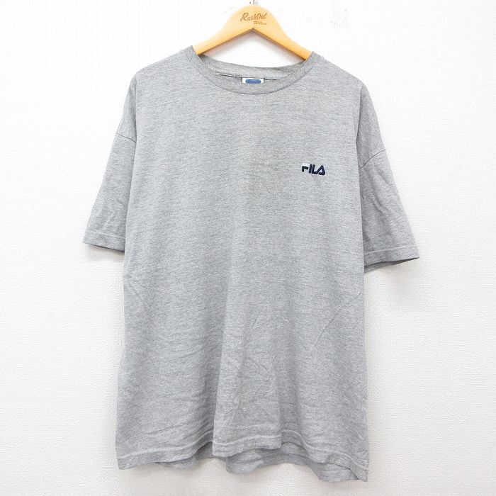 - XL/古着 フィラ FILA 半袖 ビンテージ Tシャツ メンズ 90s ワンポイントロゴ 大きいサイズ クルーネック グレー 霜降り 25ma
