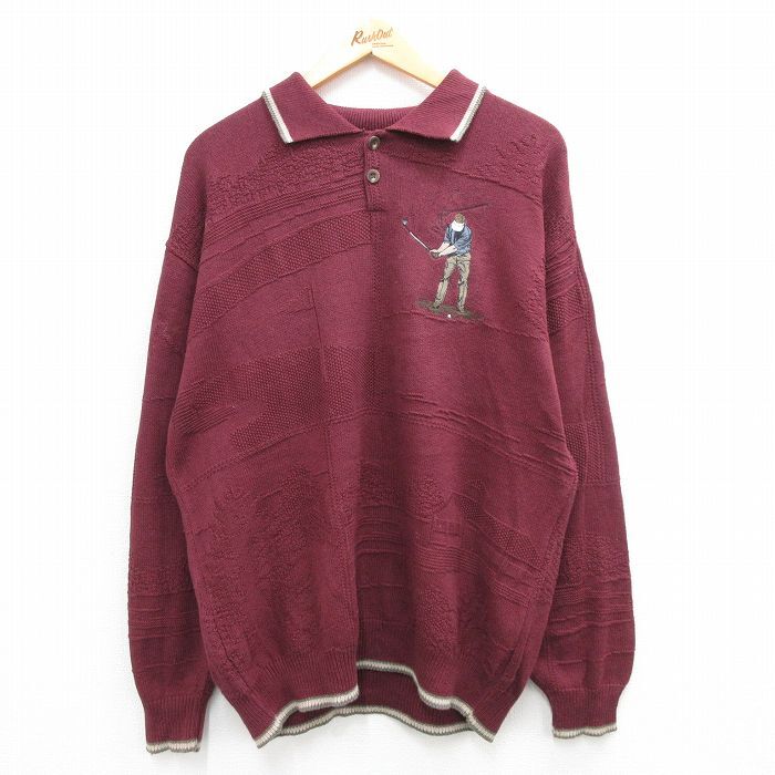 - XL/古着 長袖 セーター メンズ 90s ゴルフ 襟付き コットン エンジ他 23nov20 中古 ニット トップス