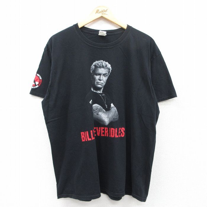 - XL/古着 半袖 ロック バンド Tシャツ メンズ ビリーネバーアイドル コットン クルーネック 黒 ブラック 25may10 中古