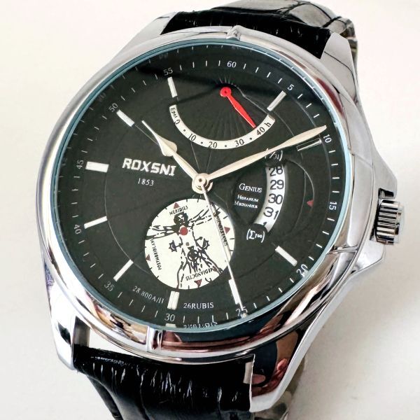 - 新品/腕時計/ダ・ヴィンチ/デイト機能/ウィトルウィウス的人体図/クォーツ/黒シルバー