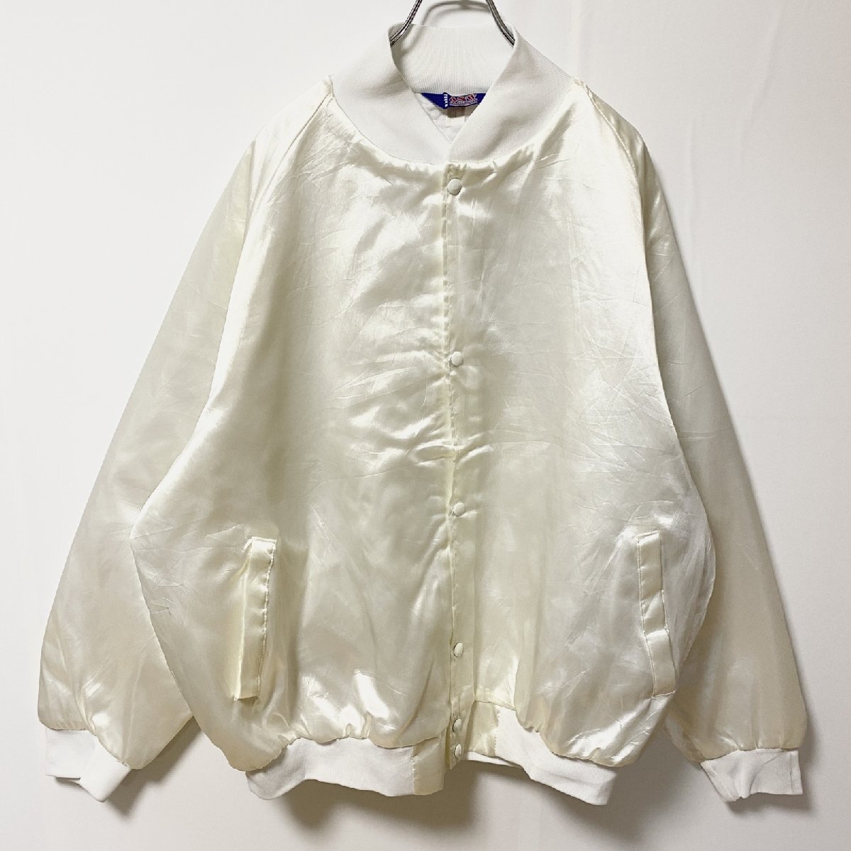 - 古着 used ~90s ASW JACKETS サテンスタジャン ブルゾン ヴィンテージ 白 ホワイト 2XLサイズ