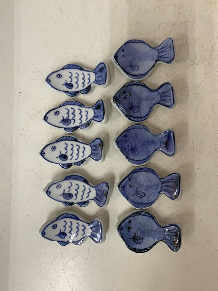 - N2313 箸置き 魚 在銘 10点 まとめて 陶器 アンティーク 昭和レトロ
