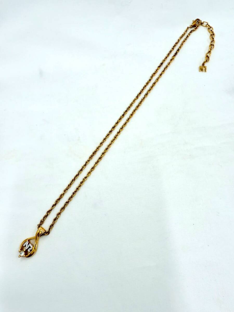 > D7855* NINA RICCI ニナリッチ しずく型 雫 ラインストーン ゴールドカラー ネックレス アクセサリー