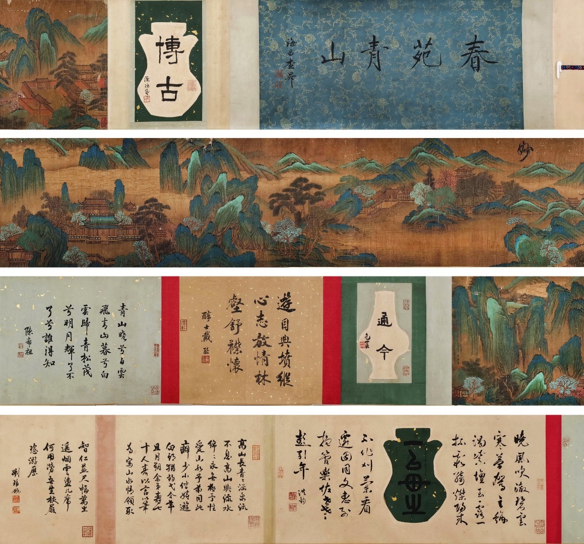 > 古美術 長巻 中国・宋時代 「荊浩書」 絹本 【春苑青山図】 手巻 軸装 書道 巻き物 真筆逸品 肉筆保証 唐物 古画 LT-250977