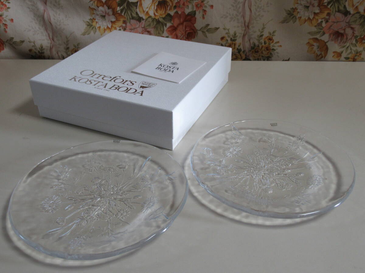 > R7 09★コスタボダ プレート皿2枚入り / KOSTA BODA フルーツ皿 器 ガラス 皿【直径約18.5×高さ約1.8~2.0cm】