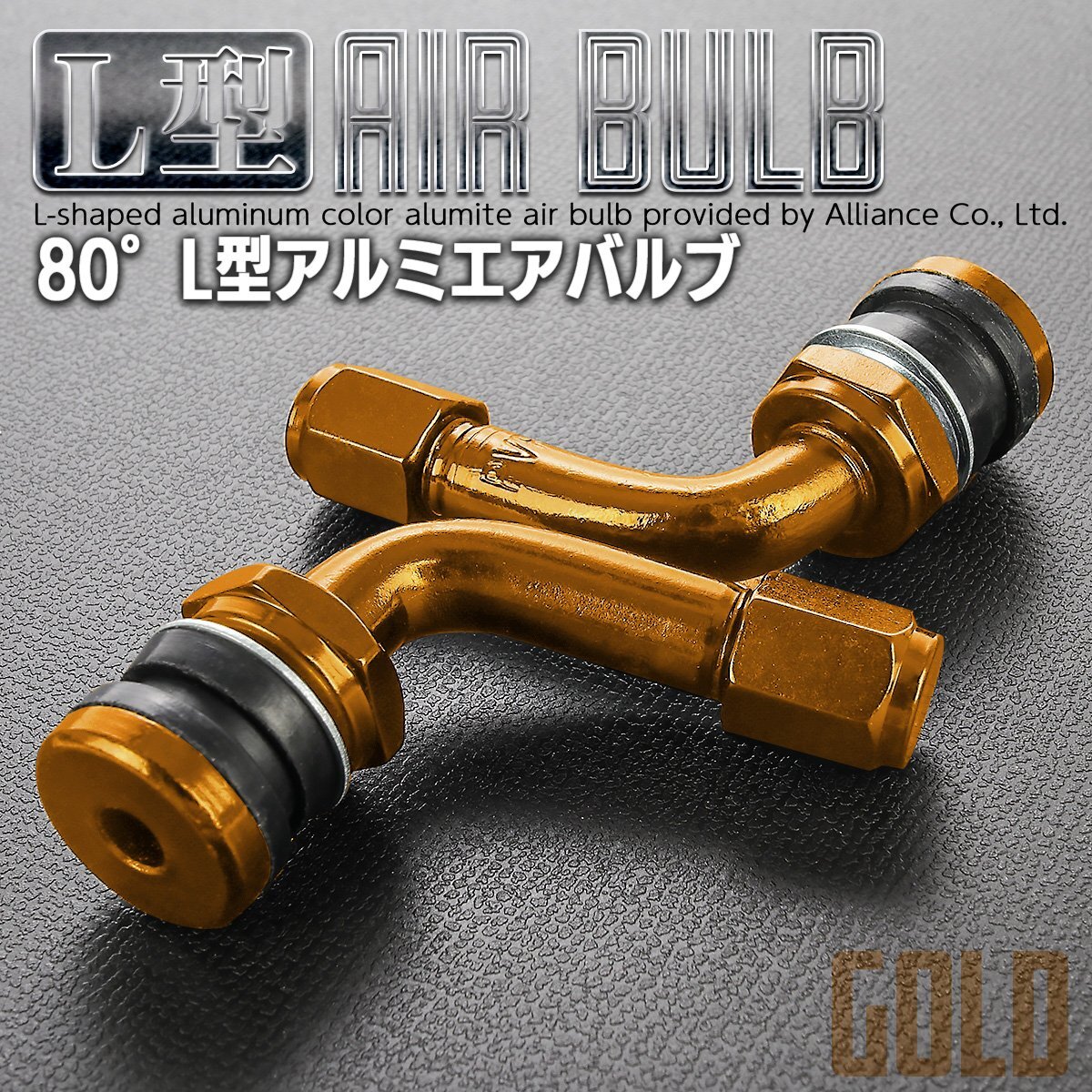 - 汎用 アルミ削り出し エアバルブ L型80度 チューブレス専用 ホイール周りのドレスアップに 2個セット ゴールド S-315-G
