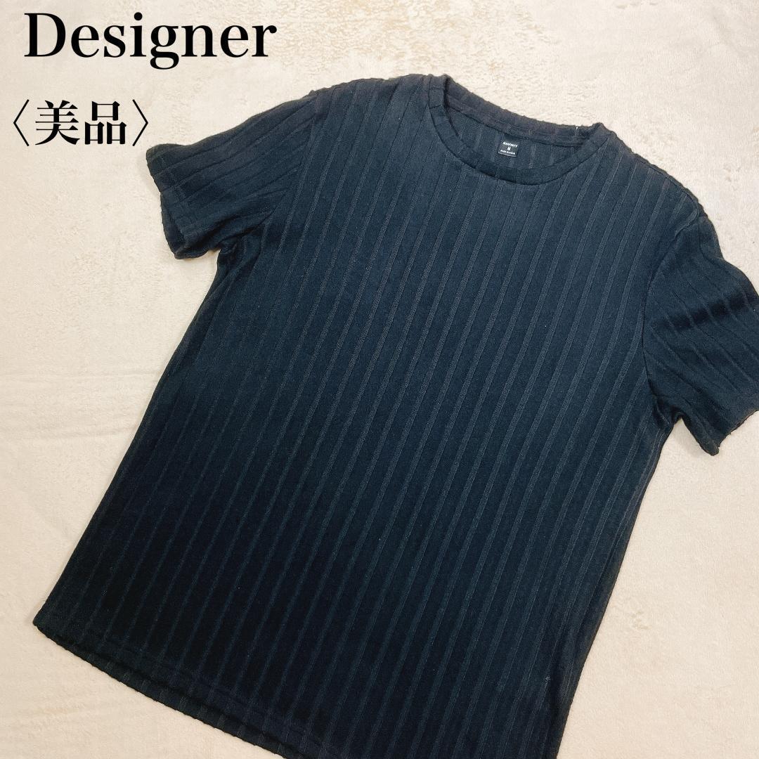 - 【美品】半袖カットソー リブ編み Tシャツ シンプル ブラック クルーネック カジュアル ストレッチ スタイルアップ トレンド デイリー A123