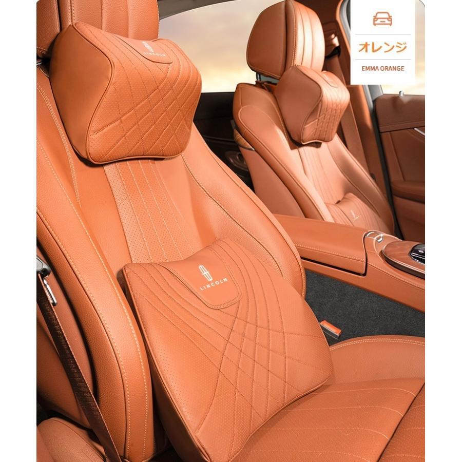 - リンカーン Lincoln ネックパッド 腰クッション 車用 背もたれクッション ネックピロー ヘッドレスト ナッパレザー 低反発 背当て 5色選択