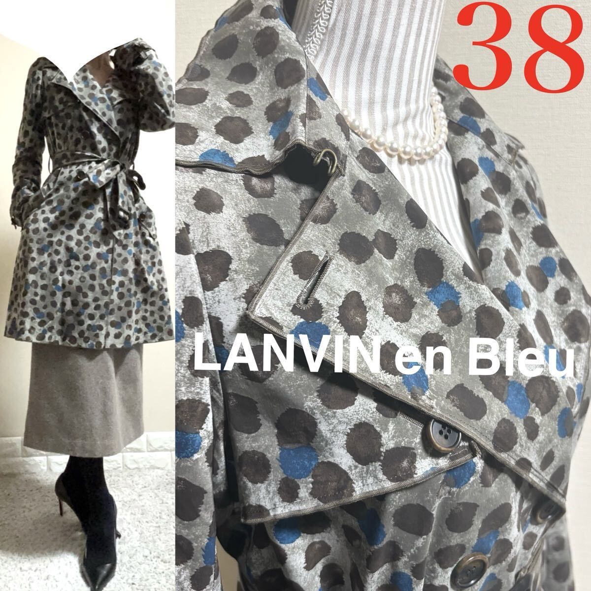 - ランバンオンブルー LANVIN en Bleu エレガント トレンチコート スプリングコート M 38 水玉 総柄 ランバン ML グレー系
