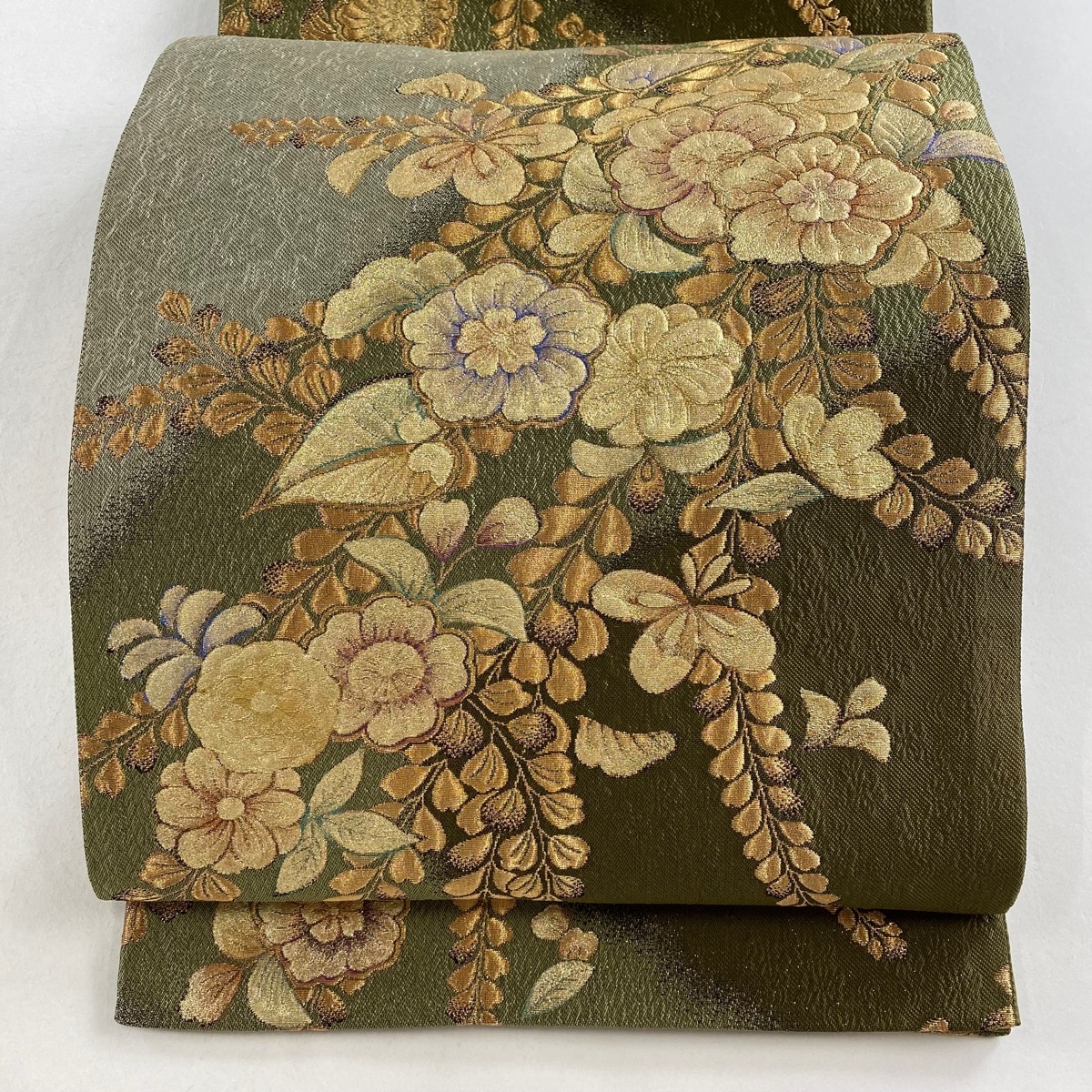 - 袋帯 美品 秀品 みやび辻ヶ花 金糸 金彩 茶緑色 六通 正絹 【中古】