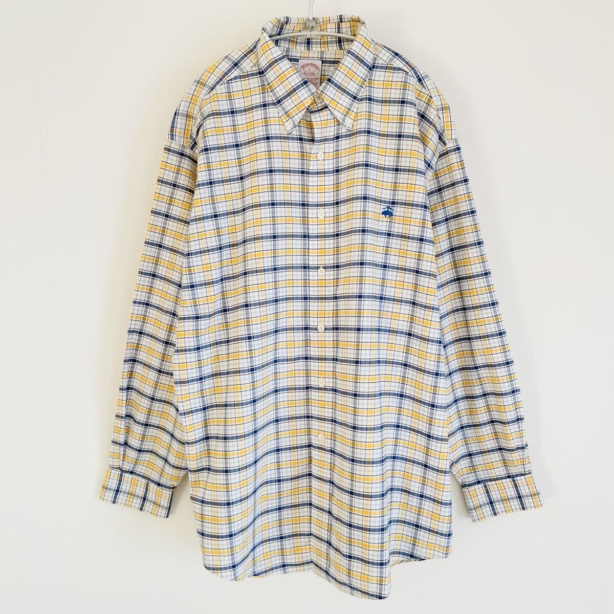 - 【Brooks Brothers/ブルックスブラザーズ】ワンポイント刺繍 オーバーサイズシャツ/長袖/黄色/チェック柄/37-80/衝撃プライス!A85