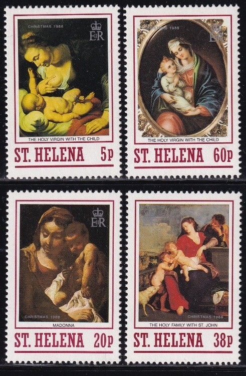 - ak7065 セントヘレナ 1988 クリスマス 絵画 #497-500