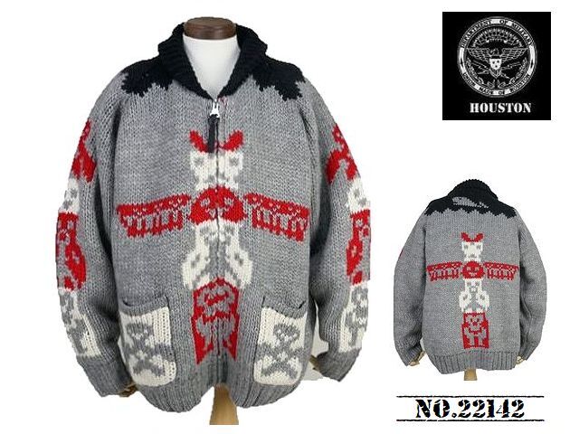 - 【送料無料 43%OFF】HOUSTON ヒューストン 裏フリース仕様 カウチンセーター 「TOTEM POLE」 NO.22142 GRAY_Lサイズ