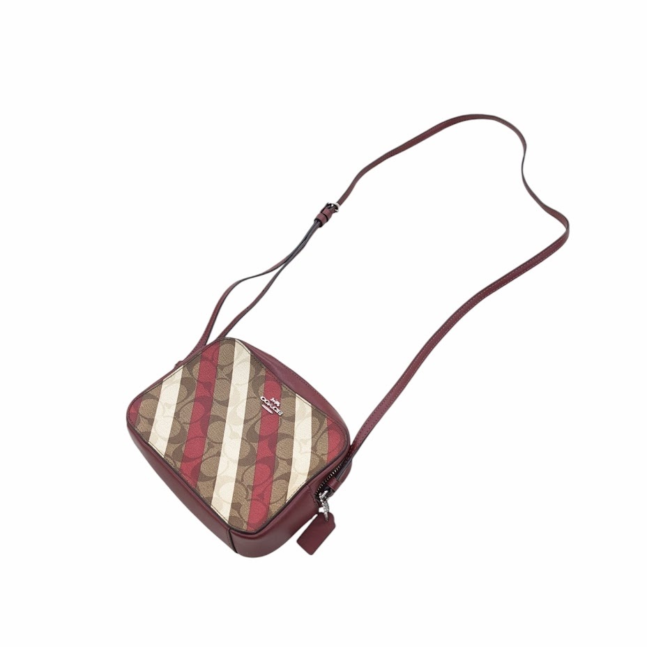 - COACH コーチ C1387 SVOT8 ダイアゴナル ストライプ プリント ミニ バッグ ショルダーバッグ ブラウン レッド系