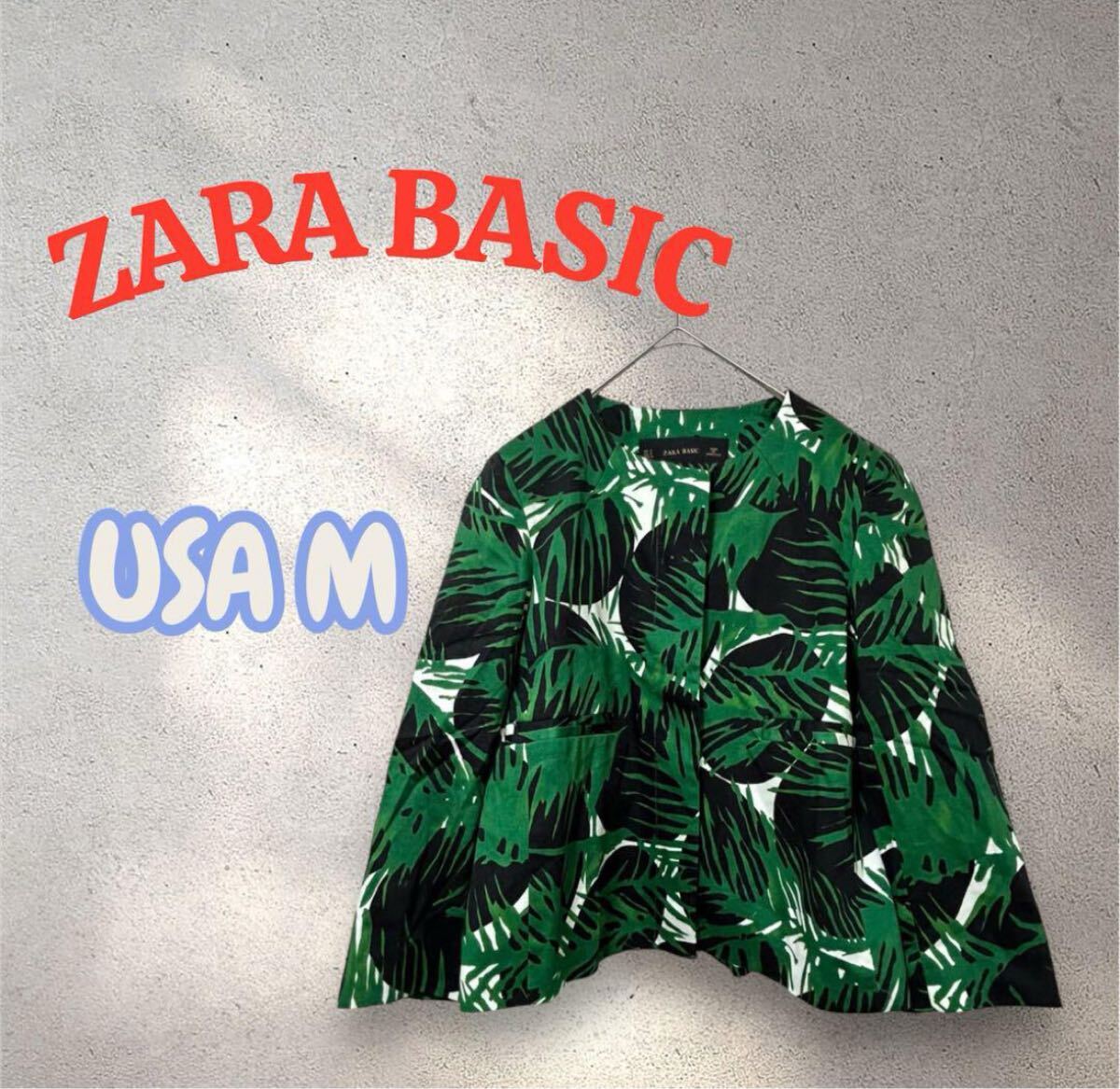 - ZARA BASIC ザラベーシック ボタニカル柄のノーカラージャケット M