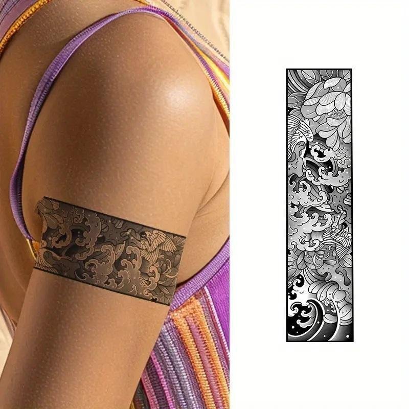 - ★送料無料 お手頃!かんたん!ちょこっとタトゥーシール 腕 手首に 和柄 耐久性あり 1枚 約 5cm×21.5cm 蓮 ロータス リアル和彫 (HL-029)