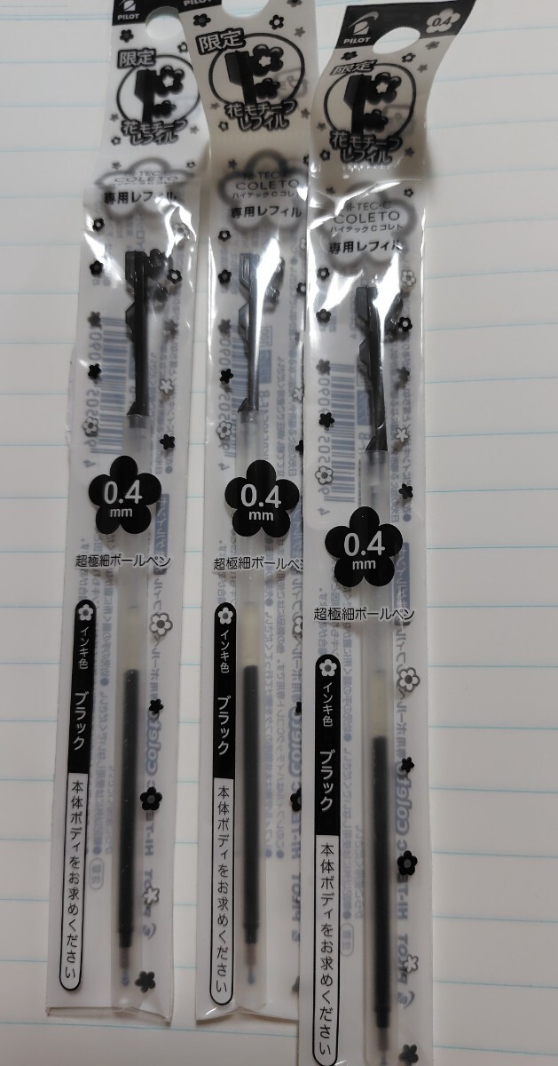 - ジェル ボールペン ♪パイロット 黒色 ♪ ハイテックcコレト♪花モチーフ♪0.4♪樹脂玉ついてます♪3本♪