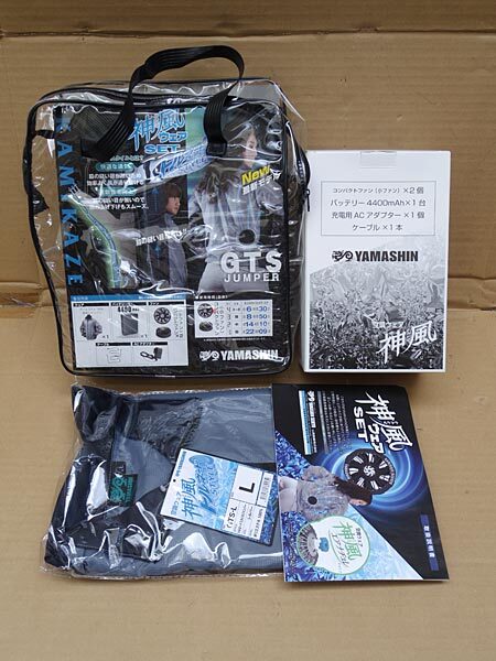 - 山真製鋸 空調服 空調ウェア GTS-L-SET Lサイズ グレー 長袖ジャンパー リチウムイオンバッテリー4400mAh フルセット