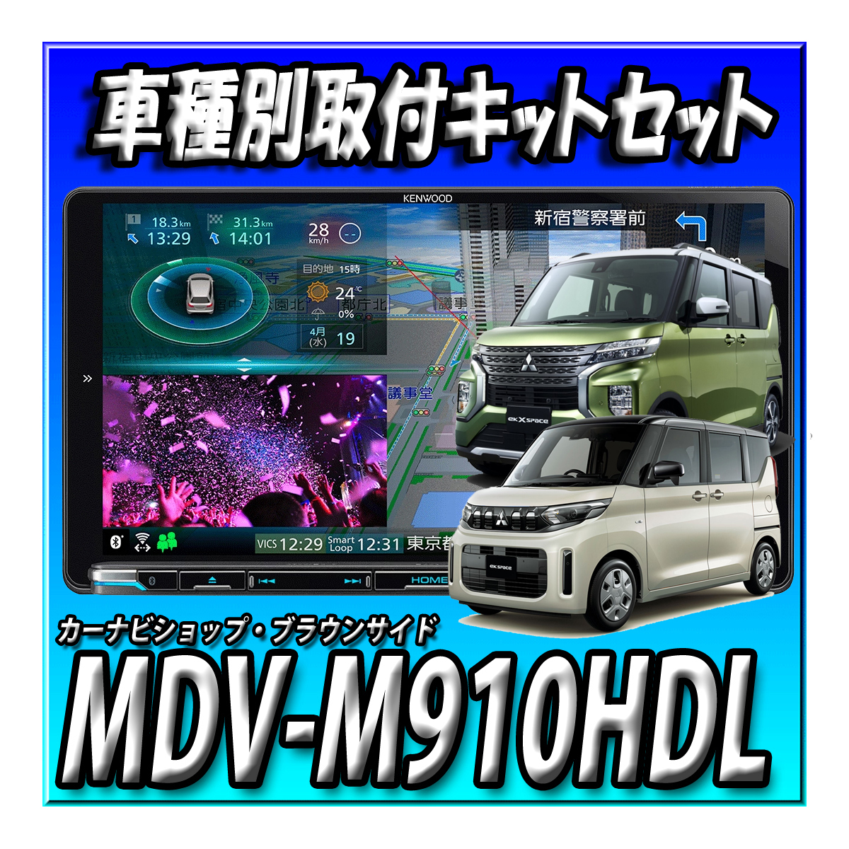 > 【6点セット販売・キャンセラー付】MDV-M910HDL+旧型eKスペース用取付キット+マルチアラウンドモニターキット一式+センターフード 9インチ