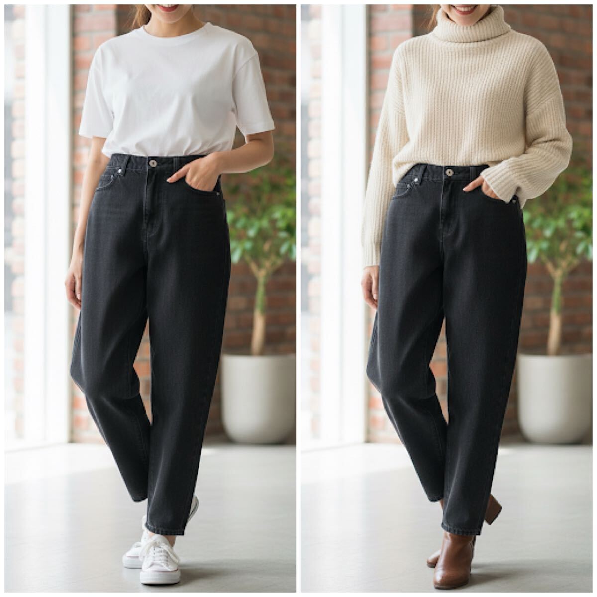 - モノマート ブラックデニムパンツ レディース 無地 ジーンズ カジュアル 綿 M