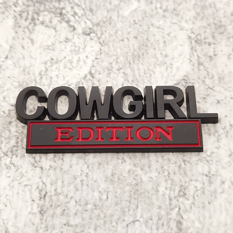 - エンブレム COWGIRL EDITION 金属 ステッカー 車用 10cm カウガール ブラック レッド メタル 貼り付け 3D 立体 バイク インテリア t8620
