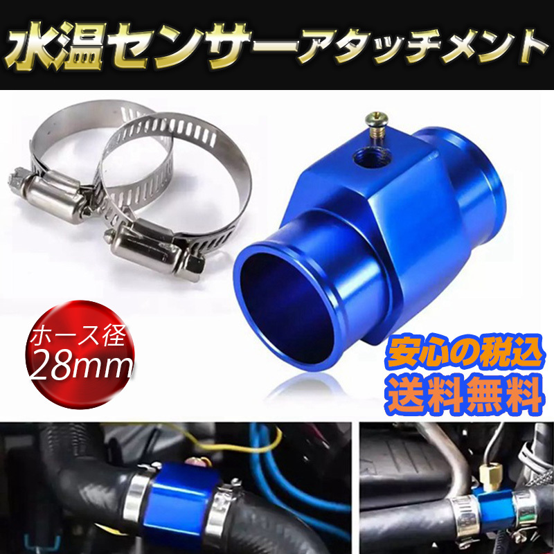 - 水温センサー アタッチメント 税込 アダプター NPT1/8 青 ブルー ホース径28mm オートゲージ ラジエター 追加メーター ストレート アルミ