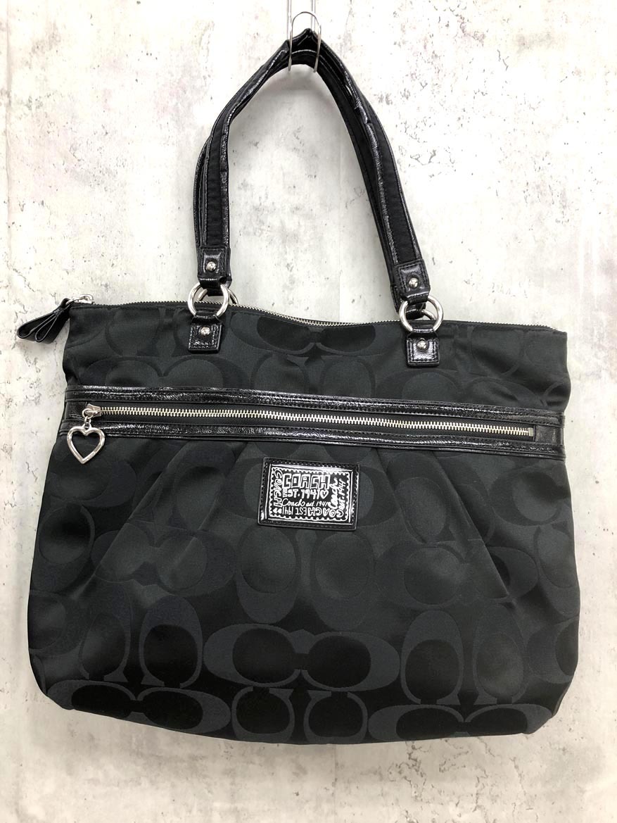 > COACH コーチ F20026 ポピー シグネチャー トート バッグ 黒 ■■◎ ☆ fib8 レディース