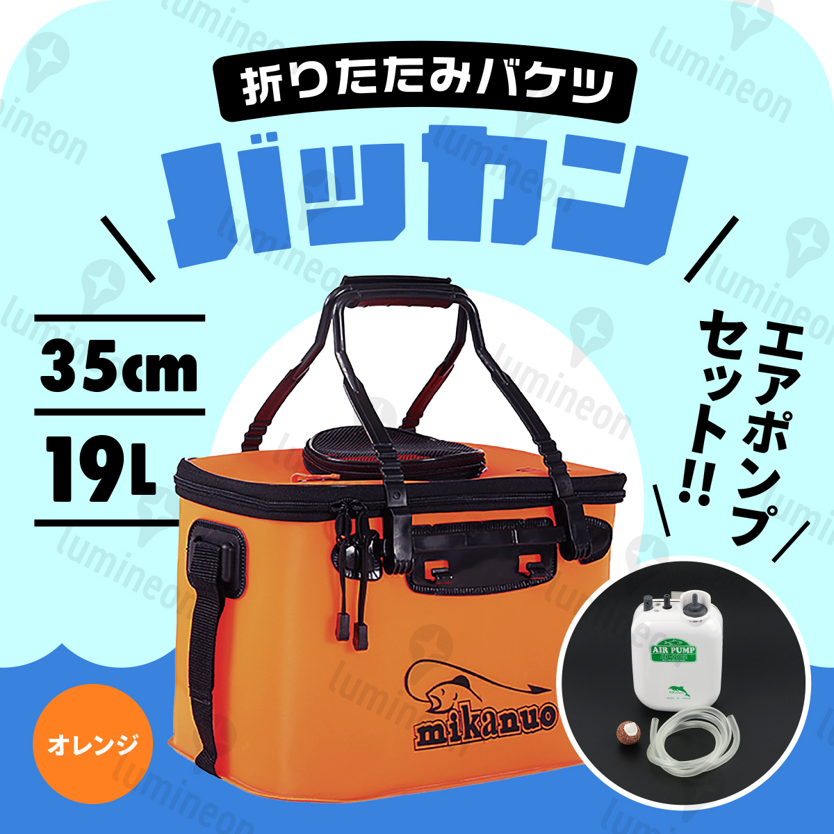 - バッカン 35cm 折りたたみ 釣り バケツ エアー ポンプ 付き エア フタ 水汲み バケツ 肩掛け ショルダー 袋 ホルダー 魚 大容量 g040db 3