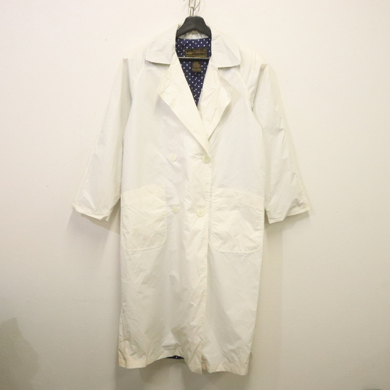 > y99 90sビンテージ EddieBauer エディーバウアー ロングコート■1990年代製 表記XSサイズ レディース 白 ホワイト 黒タグ 水玉 ドット 無地