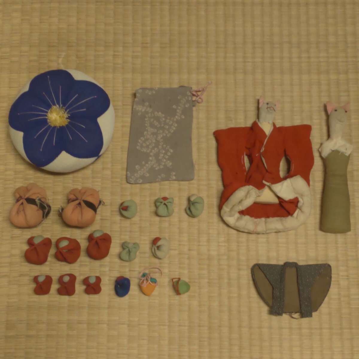 - 【時代布】 和風小物 縮緬 縮緬細工 正絹 鼠 小袋 ちりめん 生地 古裂 ハンドメイド アンティーク リメイク素材 A-2403