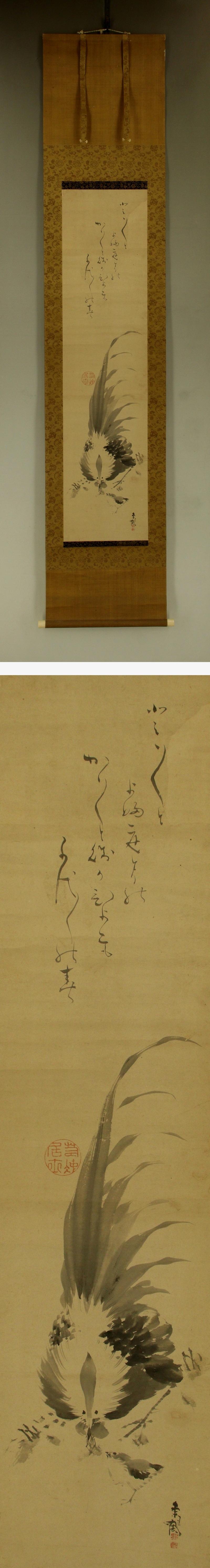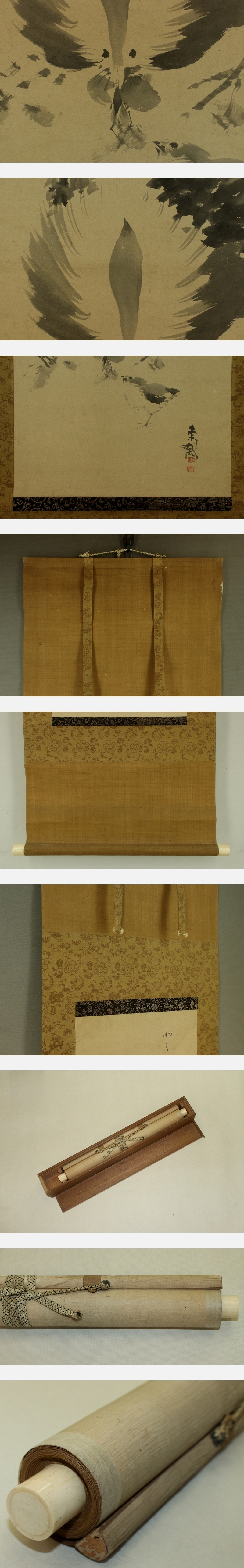 - 【模写】伊藤若冲【鶏図】◆紙本◆合箱◆掛軸 r06022