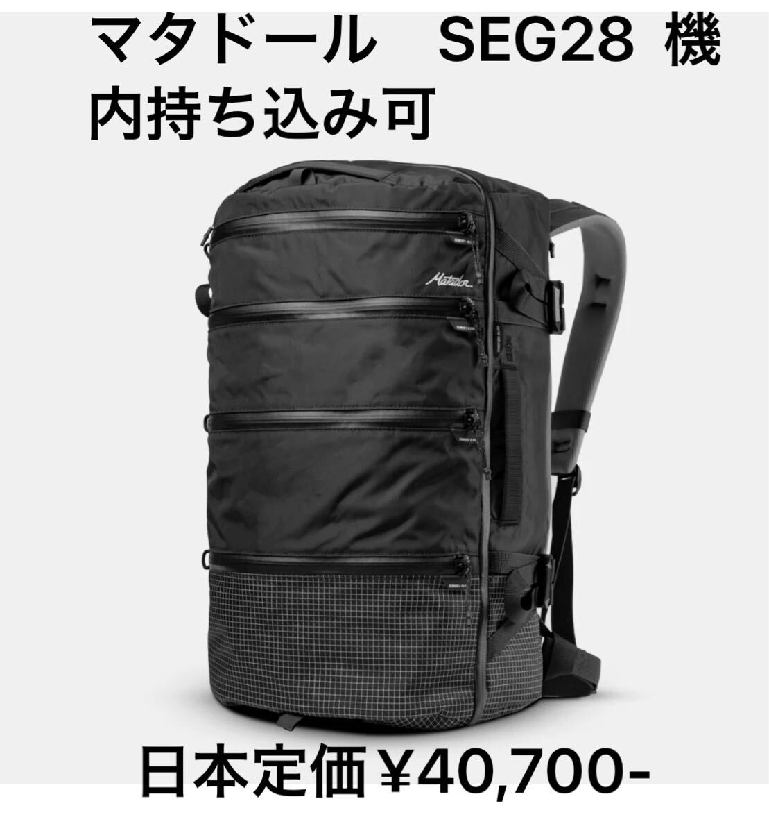 - マタドール SEG 28 BACKPACK BLACK 機内持ち込み可能サイズ 日本定価¥40,700- 新品