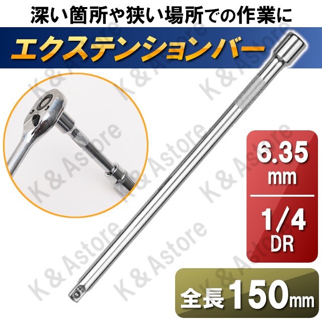 - エクステンションバー 延長バー ジョイントバー 延長棒 差込角 1/4インチ 1/4 1/4sq 1/4DR 6.35mm 6.35sq 6.35DR 全長150mm 単品販売