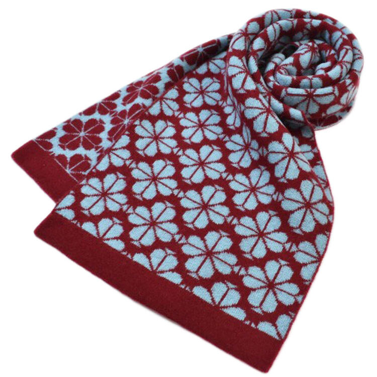 - ケイト スペード ニューヨーク マフラー レディース ブランド ウール100 ハート クローバー ボルドー ミントブル