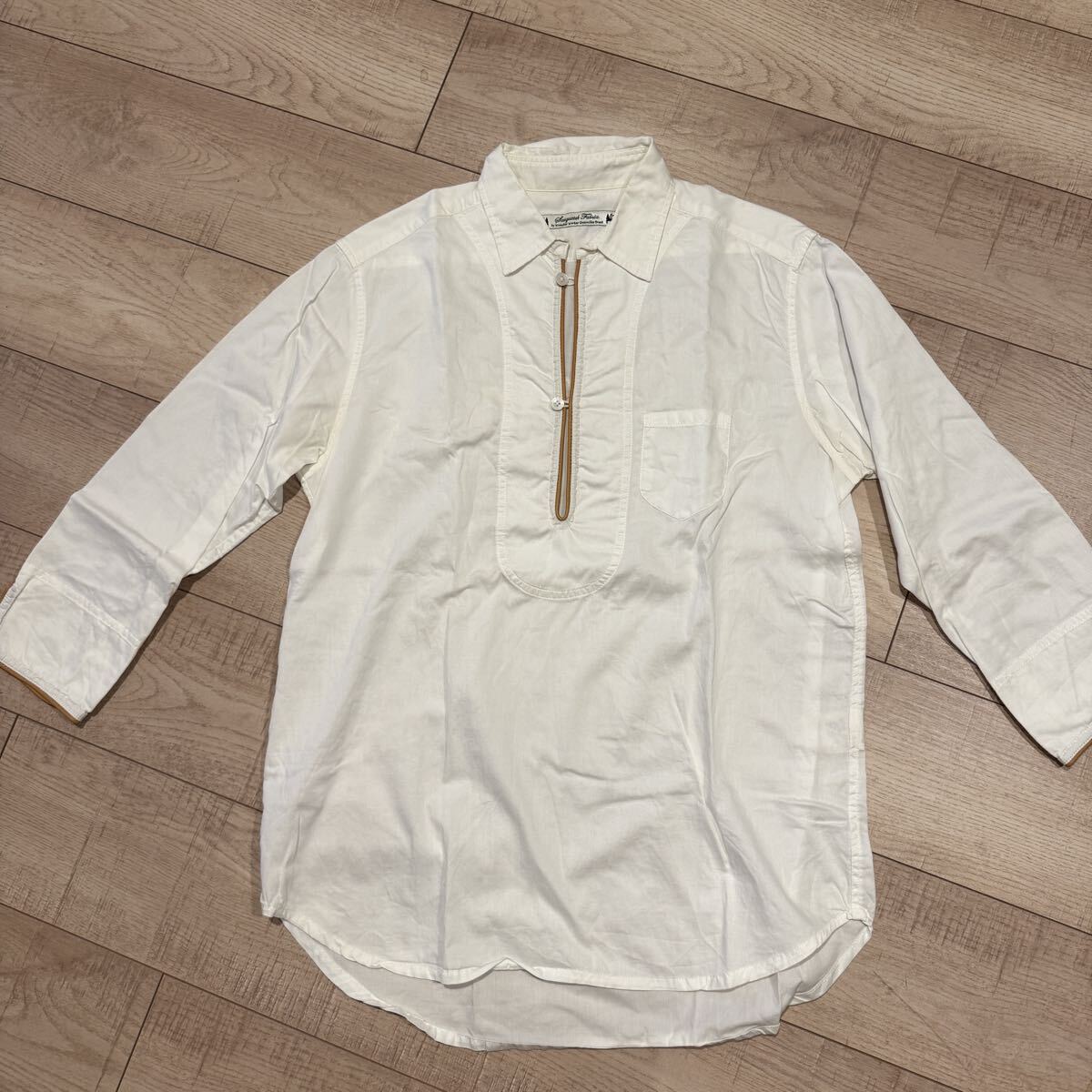- sasquatchfabrix サスクワッチ 背中刺繍シャツ 白 レザートリミング