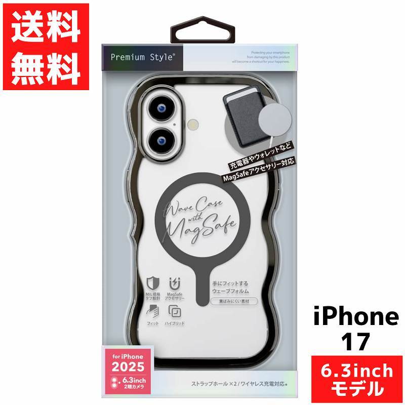 - iPhone 17用 MagSafe対応 ウェーブケース メタルブラック ストラップホール アイフォン スマホ カバー PG-25AMW02BK