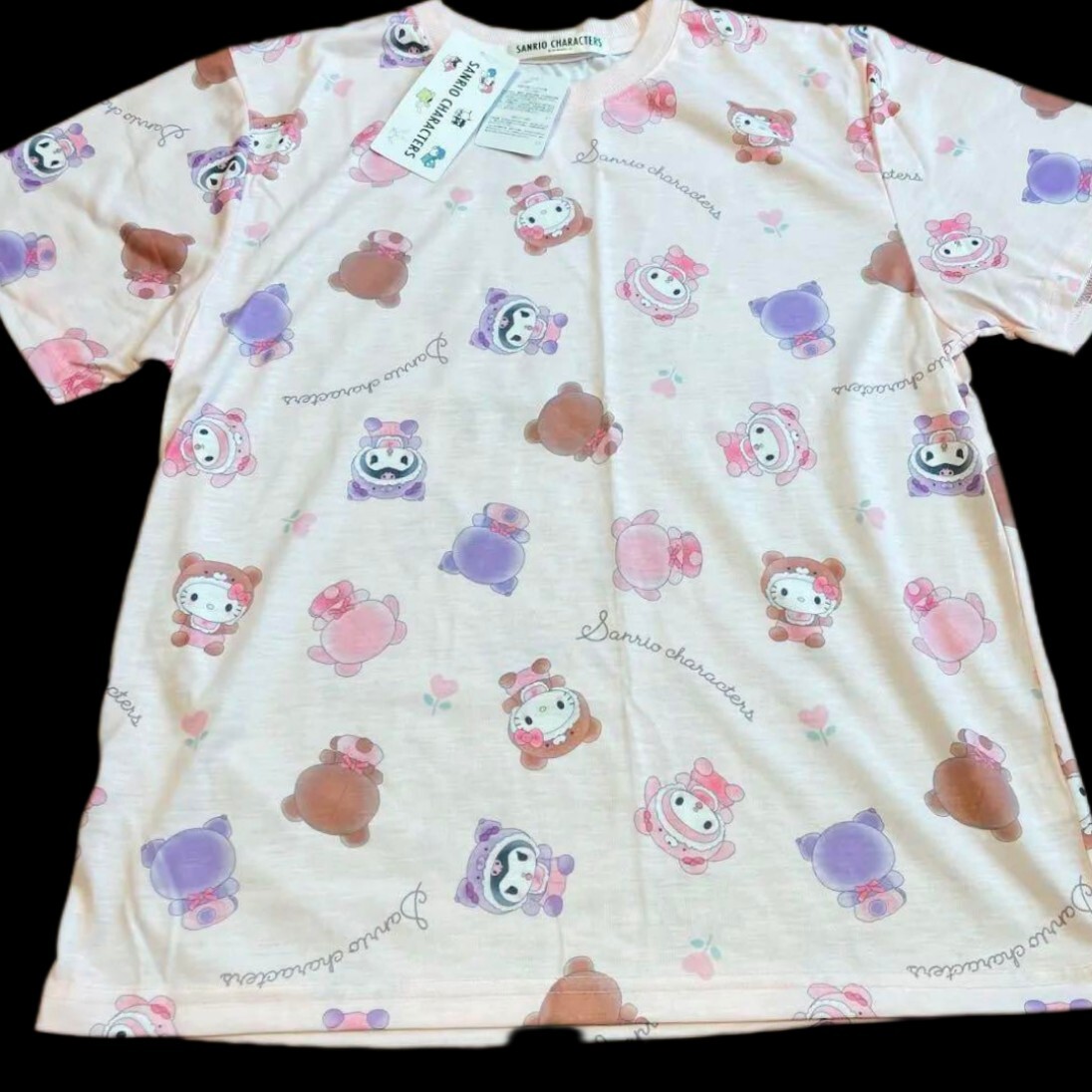 - 即決 サンリオキャラクターズ レディースTシャツ【LL】新品タグ付き ハローキティ マイメロ クロミ 2L